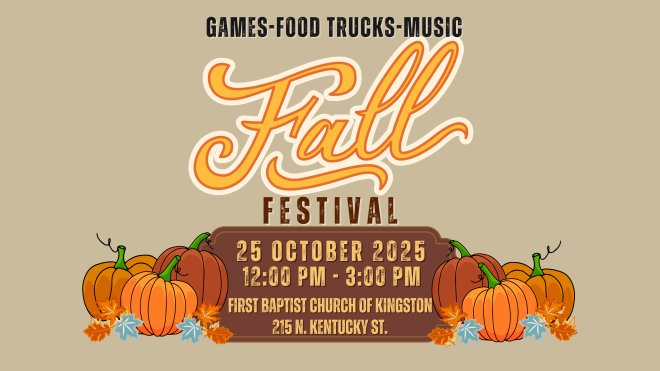 You are invited to our Fall Festival on Saturday, October 25 from 12-3 PM. We will have games, food trucks, and music. Fun for all ages!